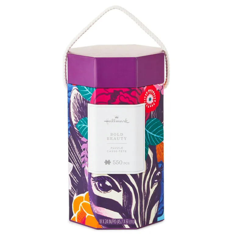 - Bold Beauty jigsaw puzzle includes 550 interlocking pieces in a sturdy storage box.