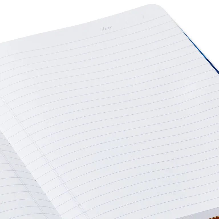 Keep track of favorite quotes, fresh ideas or creative flashes in this hardcover notebook. Bold strokes of color make a vibrant background for a silver disc with positive message on the cover. Each lined page includes a space at the top for the date, and an attached blue ribbon lets you mark a particular page or current place.