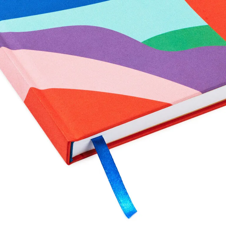 - Hardcover notebook features an abstract design in a rainbow of colors and silver foil accents.
