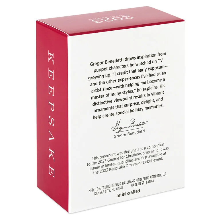 - Key Features: Limited quantity, first available at the 2023 Keepsake Ornament Debut event. Coordinating 2023 Gnome for Christmas ornament sold separately. Not eligible for Keepsake Wish List.