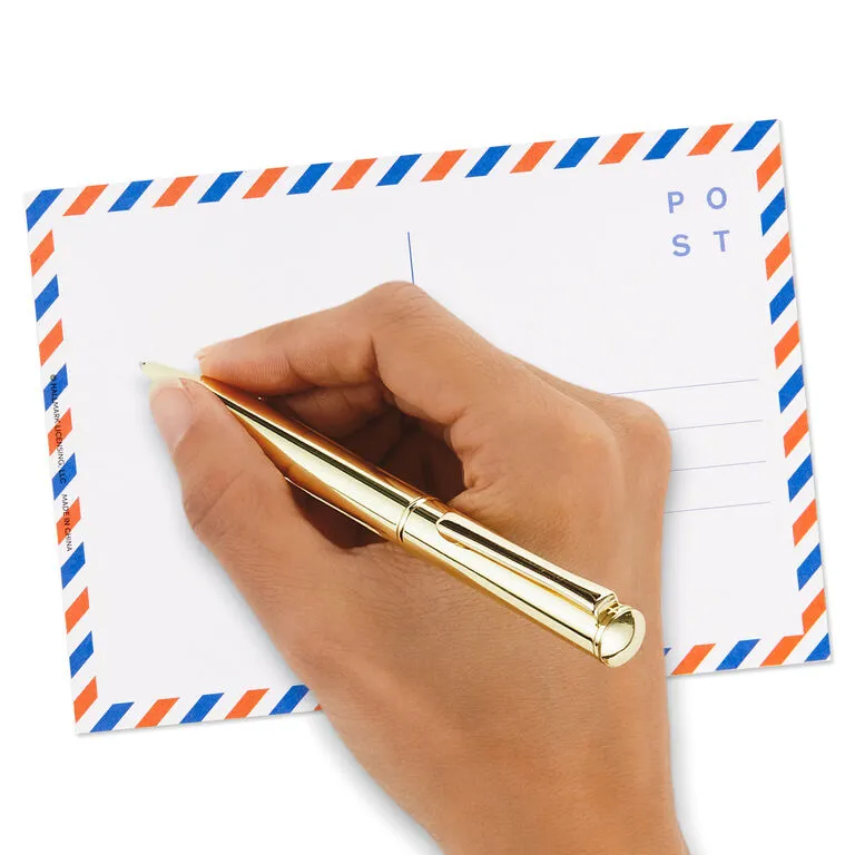- Booklet of 10 blank postcards includes 2 each of 5 designs: blue lettering, smiley faces, retro lettering, rainbow, pink lettering on yellow. Postcards feature matte paper.