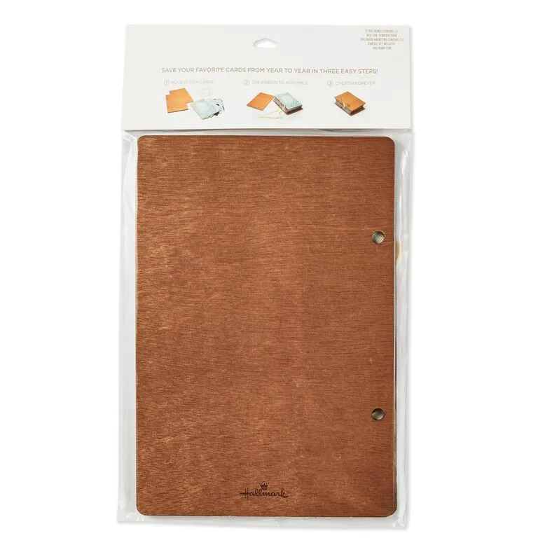 - Includes 2 decorative wood panels for front and back cover, grosgrain ribbon and paper template to use as hole punch guide. (Hole punch not included.)