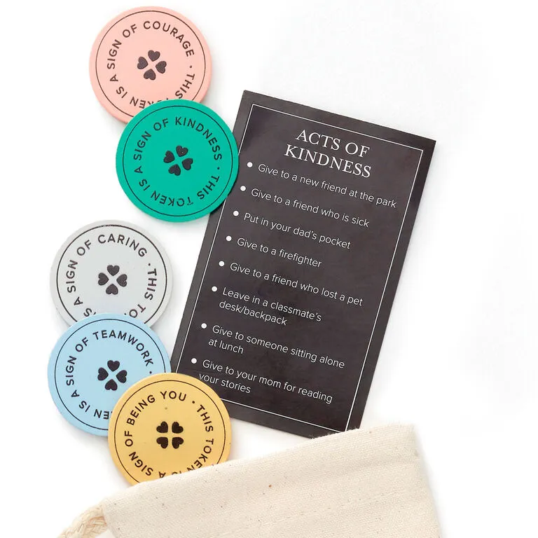 - Box includes one cotton and poly-fiber doll and a kindness kit with five wooden tokens with special phrases to show teamwork, courage, being you, caring and kindness.