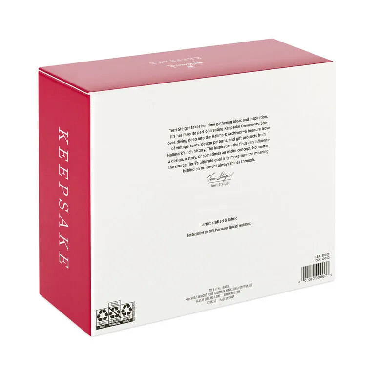 - Additional Details: Artist crafted by Terri Steiger. Plastic Christmas tree topper with metal spring base. Fabric Christmas tree skirt. Spot clean only.