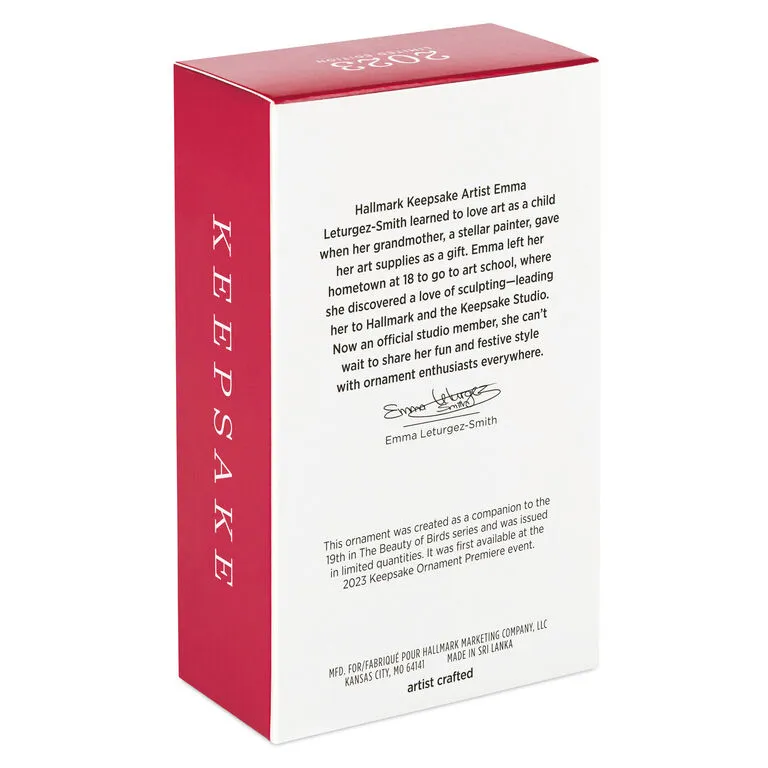 - Key Features: Limited quantity, first available at the 2023 Keepsake Ornament Premiere event. Coordinating 2023 The Beauty of the Birds ornament sold separately. Not eligible for Keepsake Wish List.