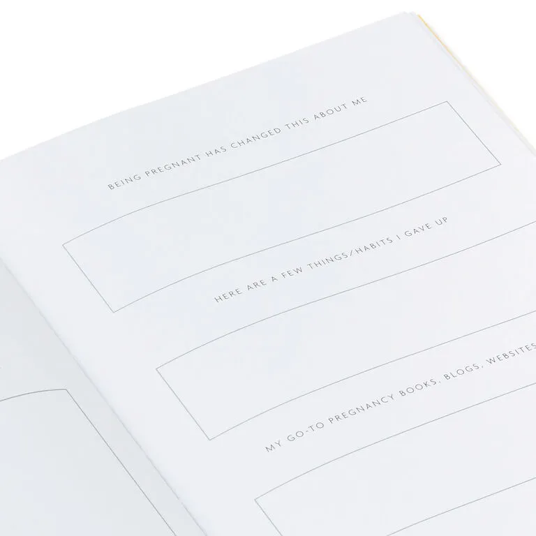 - Fabric-wrapped hardcover pregnancy journal features gold foil lettering.