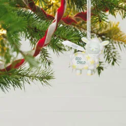 Remember a precious baby’s first Christmas for years to come. Parents and grandparents will love this premium porcelain Christmas tree ornament that features a sweet mint green umbrella with a sparkly scallop design and glittery heart charms.